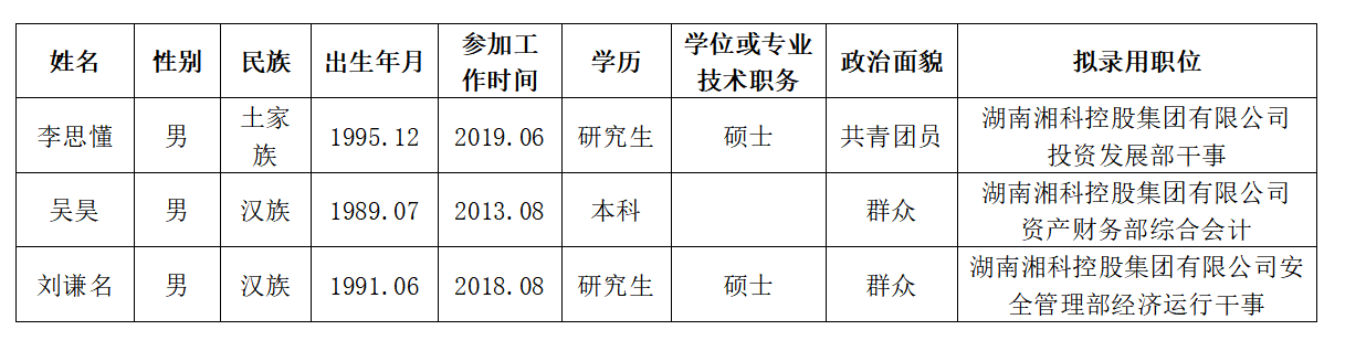 为了加强对干部选拔工作的监督,提高识别和任用干部的准确程度,现对b体育网下列拟录用人员进行入职前公示: